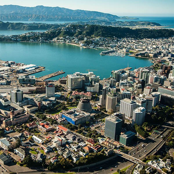 Wellington is at the south-western tip of the North Island on Cook Strait, separating the North and South Islands. On a clear day the snowcapped Kaikoura Ranges are visible to the south across the strait. To the north stretch the golden beaches of the Kapiti Coast.